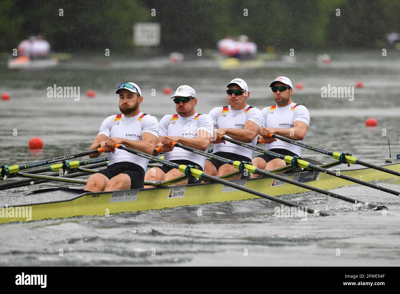 Lucerne Schweiz 21st May 2021 From Left Max Appel Ger Hans Gruhne Ger Karl Schulze Ger Tim Ole Naske Ger Men S Quadruple Sculls Foursome Men S Quadruple Sculls M4x Aktion Rennen Ruder World Cup On